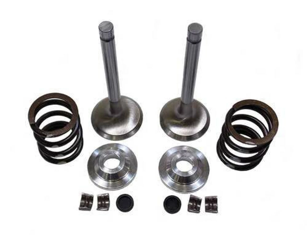 Comes with stock size(25mm & 24mm) stainless valves, keepers and retainers, valve springs(26lb) and lash caps.